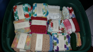 A whole bunch of handmade dishcloths, ready for a craft fair in my hometown.